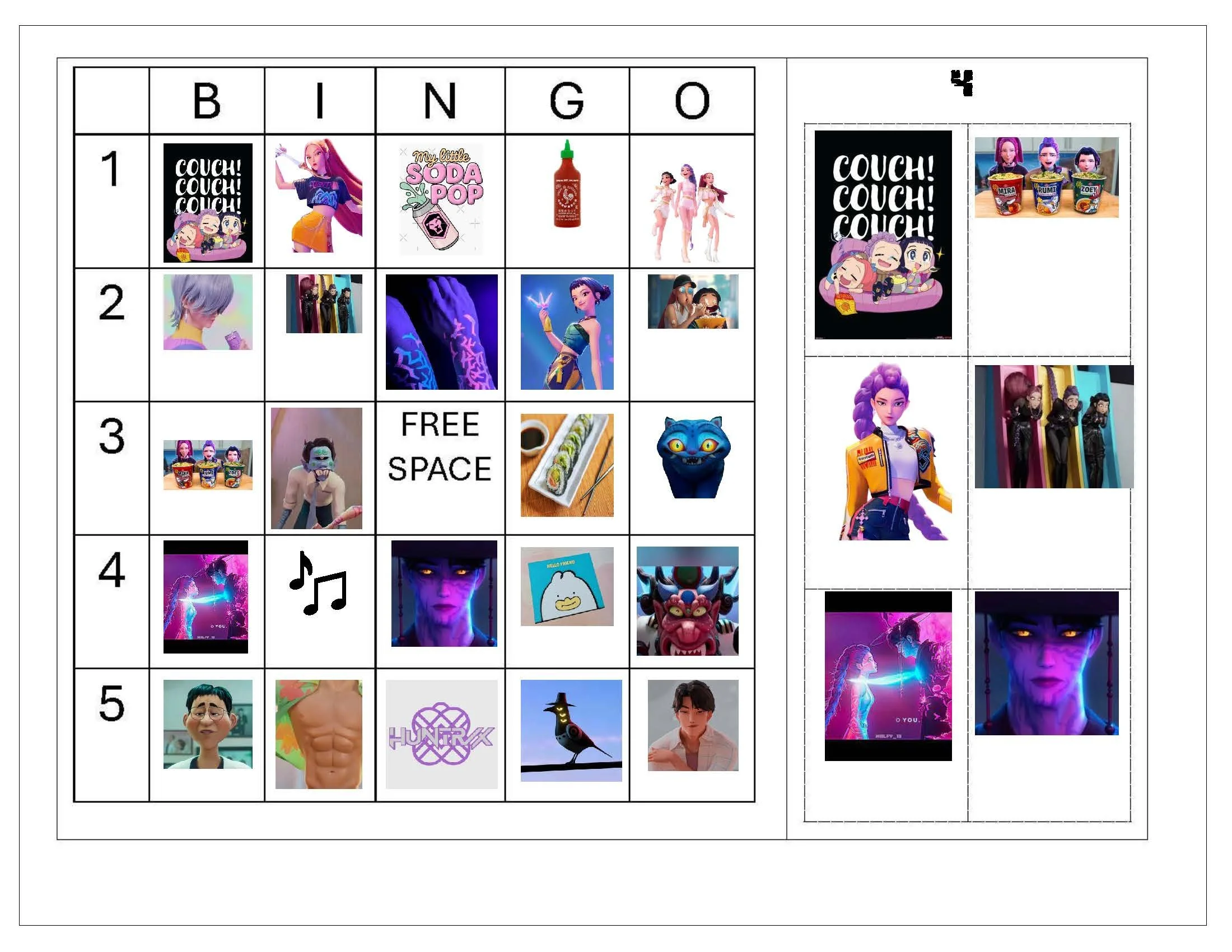 Bring the energy of a K-Pop Demon Hunters party to game night with this fast, fun Bingo set! Perfect for fans and party-goers, the pack includes 12 uniquely designed, ready-to-print Bingo cards and a full set of calling cards—everything you need to play right away. Print extra copies to run multiple rounds, swap winners, and keep the excitement going between performances, photo ops, and dance-offs. Bright, themed artwork and clear call cards make setup a breeze so you can focus on the fun. Ideal for party favors, icebreakers, or a lively centerpiece activity that matches your K-Pop Demon Hunters vibe.