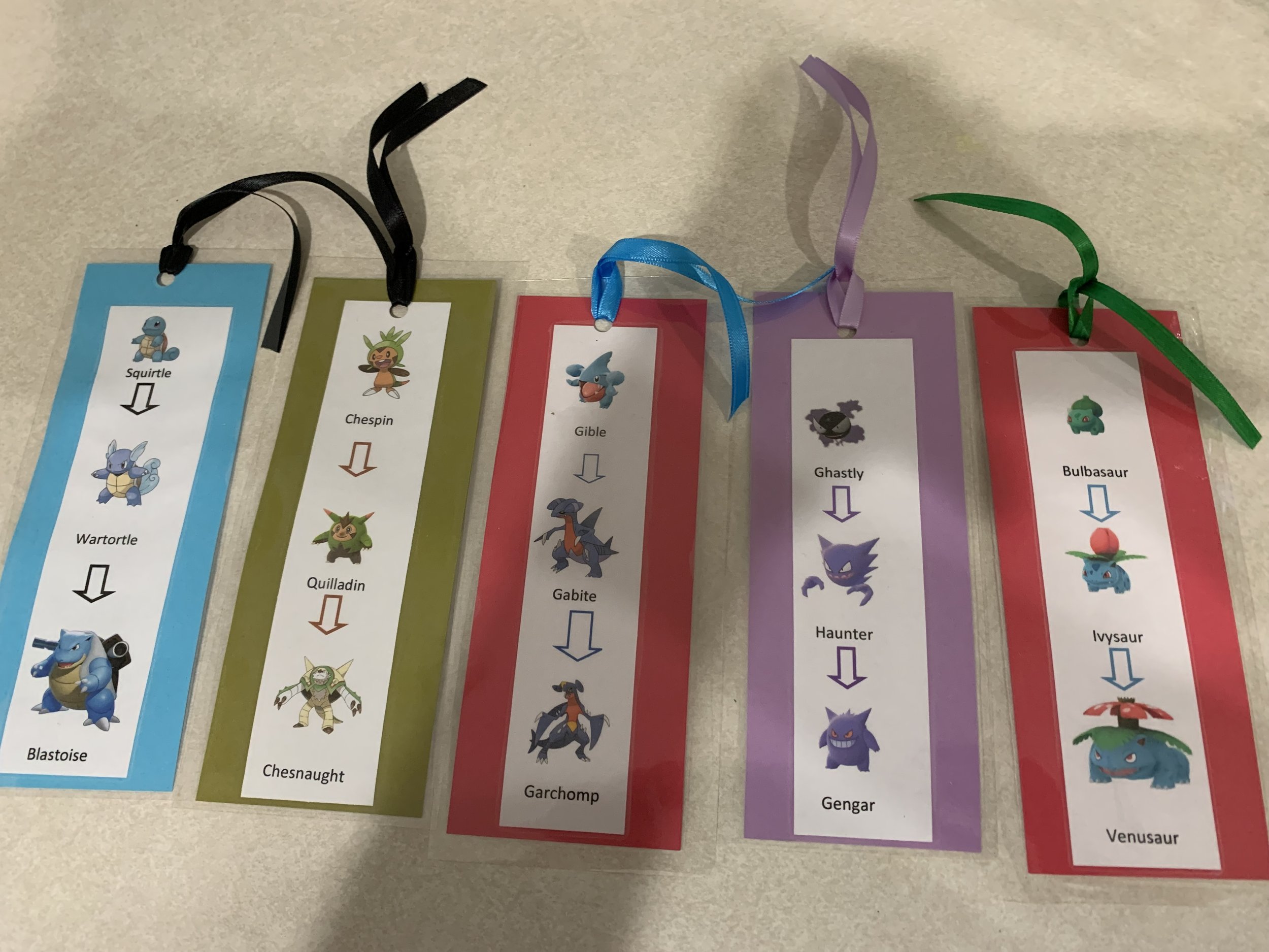Level up reading time with these adorable handmade Pokémon evolution bookmarks—perfect for goodie bags, party prizes, or classroom rewards. Each bookmark showcases a Pokémon at different stages of evolution, with the playful message on the back: "reading helps YOU evolve." Durable, colorful, and crafted with care, they’re a fun, collectible way to encourage kids to open a book and watch their imagination grow. Great for birthday parties, game-night prizes, or as a special treat for young readers.