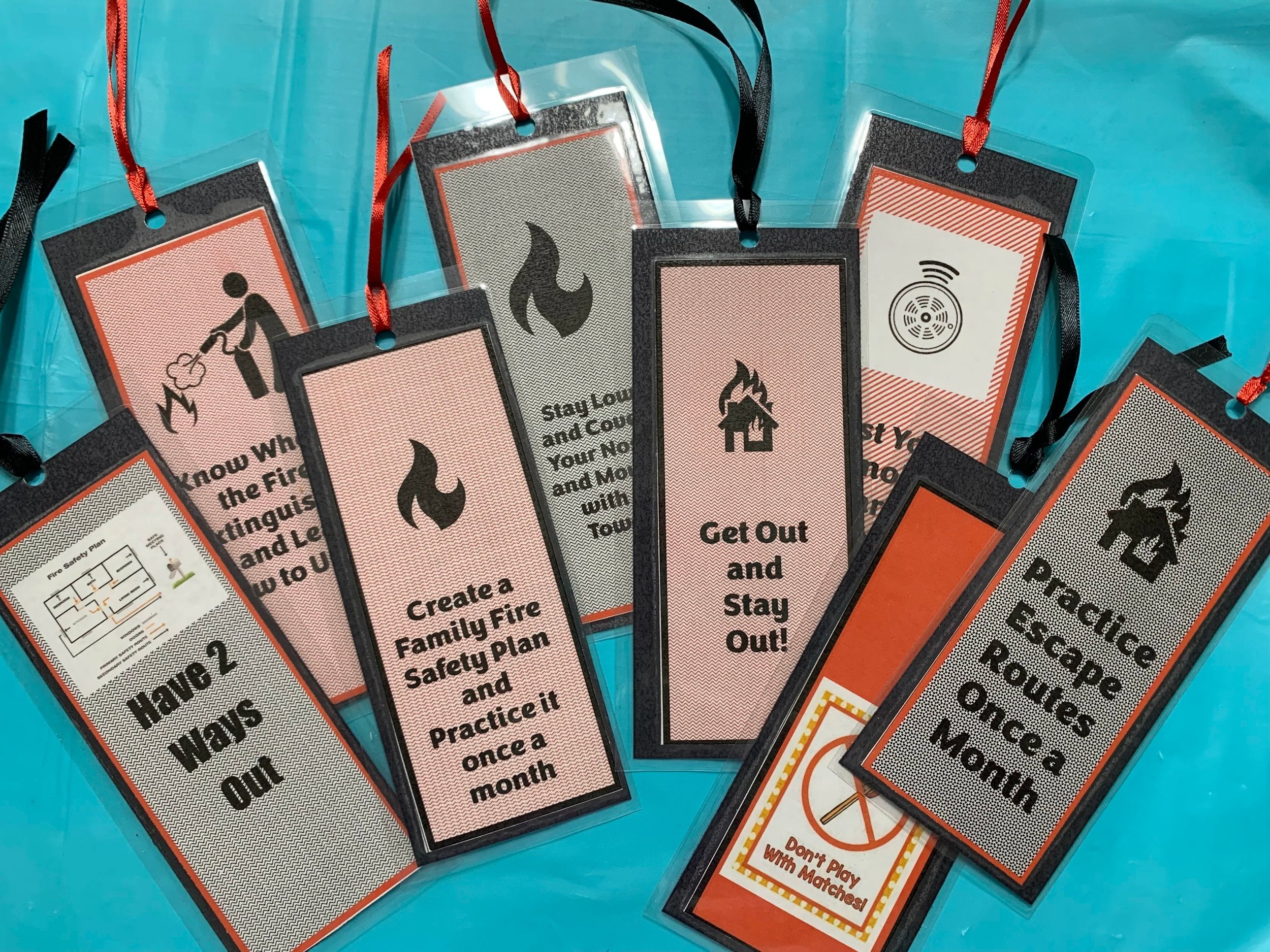 Perfect for a fire safety event giveaway, prize, or party favor, these bookmarks are both useful and educational. Designed in bold red, black, and grey, each bookmark features a clear, kid-friendly fire safety lesson printed on it—easy-to-remember tips that help reinforce safe habits at home and school. Lightweight and durable, they’re a handy takeaway that kids and adults will use again and again, making them a thoughtful addition to any safety-focused event or celebration.