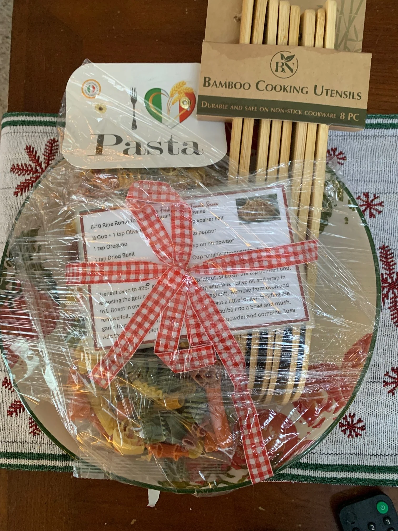 A delightful pasta lover’s gift: artisan pasta in a rainbow of colors and shapes, crafted wooden pasta spoons, and a set of charming recipe cards — all presented in a unique ceramic pasta bowl. Thoughtfully assembled and ready to gift, it’s perfect for holidays, hostess thank-yous, bridal showers, or a “just because” surprise. Beautiful, useful, and fun to share.