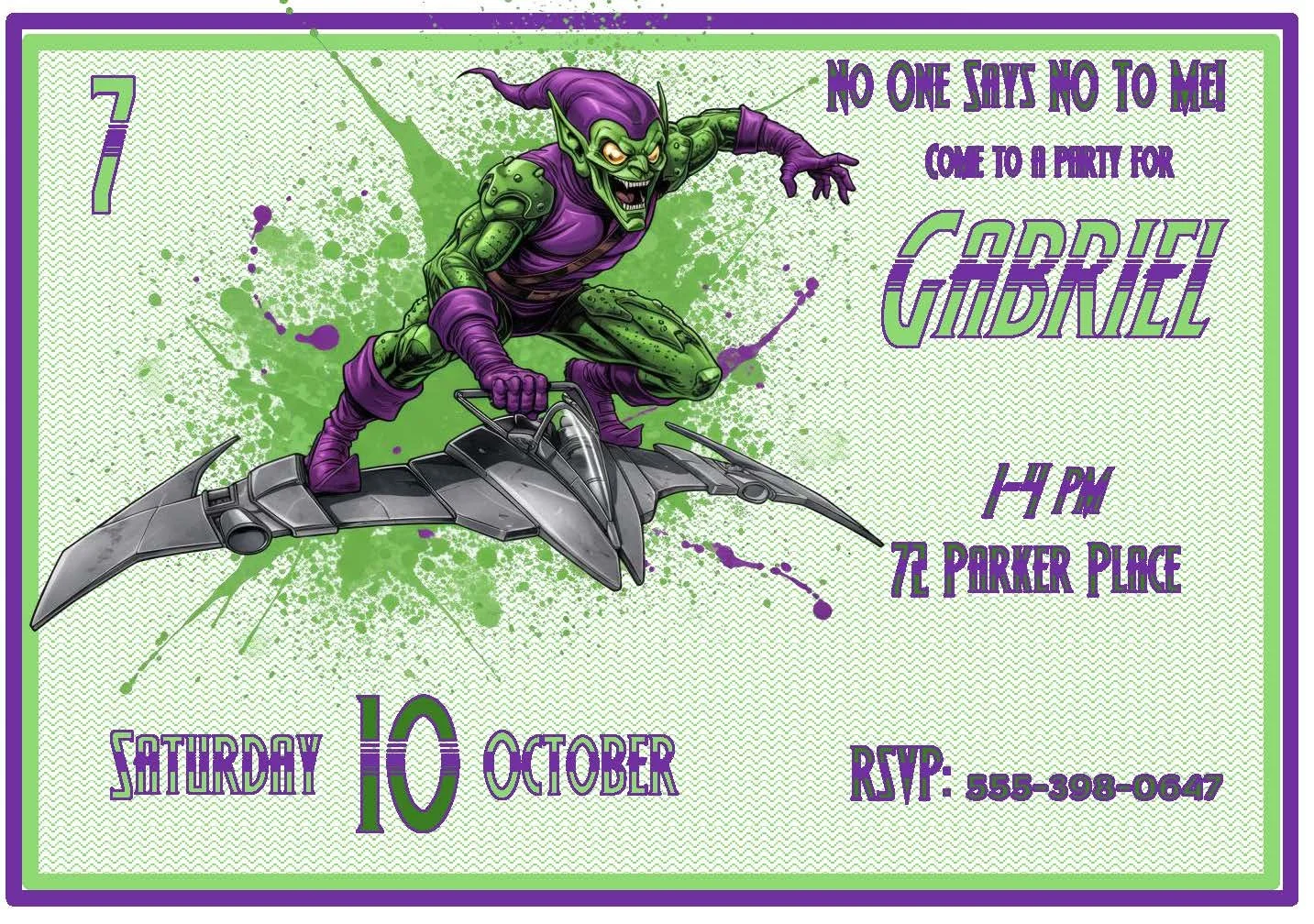 Why should superheroes have all the fun? Meet our Green Goblin invitation — a mischievous twist that lets the villains steal the spotlight. Bursting with wicked green hues, playful typography, and a cheeky, impish vibe, this invite sets the tone for mischief, mayhem, and unforgettable party antics. Perfect for birthday bashes, costume parties, or any celebration that wants a dash of deliciously naughty fun. Pair it with other villain-themed pieces from our collection to create a delightfully devious party that guests will talk about long after the confetti settles.