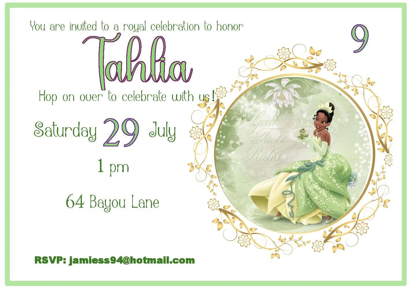 This enchanting invitation features the always-stunning Tiana from The Princess and the Frog, nestled in a lush garden of soft greens and dreamy lavender hues. Delicate florals and gentle watercolor tones create a magical, storybook feel—perfect for birthday parties, tea parties, or any celebration that calls for a little royal charm. Elegant, whimsical, and utterly charming, this invite sets the scene for a day full of sparkle and sweet memories.