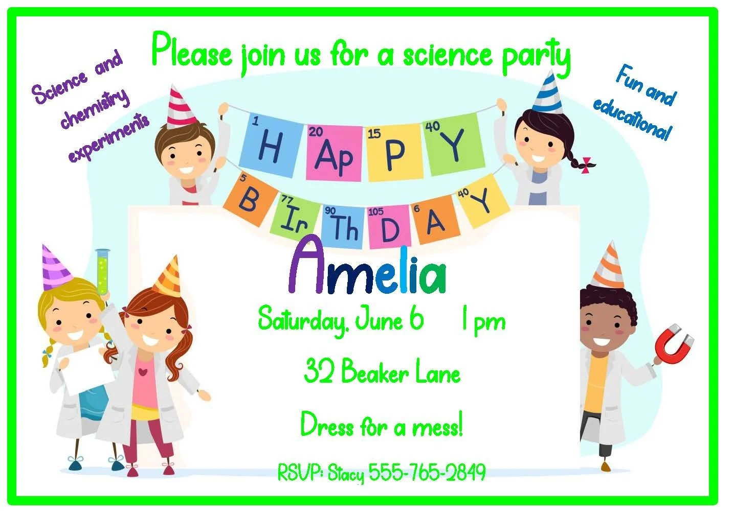 Bring the wow to your next STEM celebration with this colorful, fun science party invitation—perfect for chemistry, mad scientist, or any experiment-loving crowd. Bright, playful design sets the tone for bubbling beakers, glowing experiments, and hands-on activities that spark curiosity. Include it with our complete Science Party Plan or grab a Party in a Box to make hosting effortless. Get your guests excited for experiments that amaze!