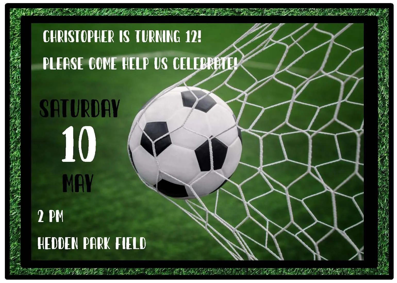 This dynamic soccer invitation will get kids excited for your party. Bright green grass, a crisp white net, and a soccer ball captured mid-goal set the scene for a high-energy celebration. Playful, bold design and cheerful colors promise a fun-packed event—perfect for young fans and little athletes alike. Add your party details and get ready for cheers, games, and unforgettable kicks!