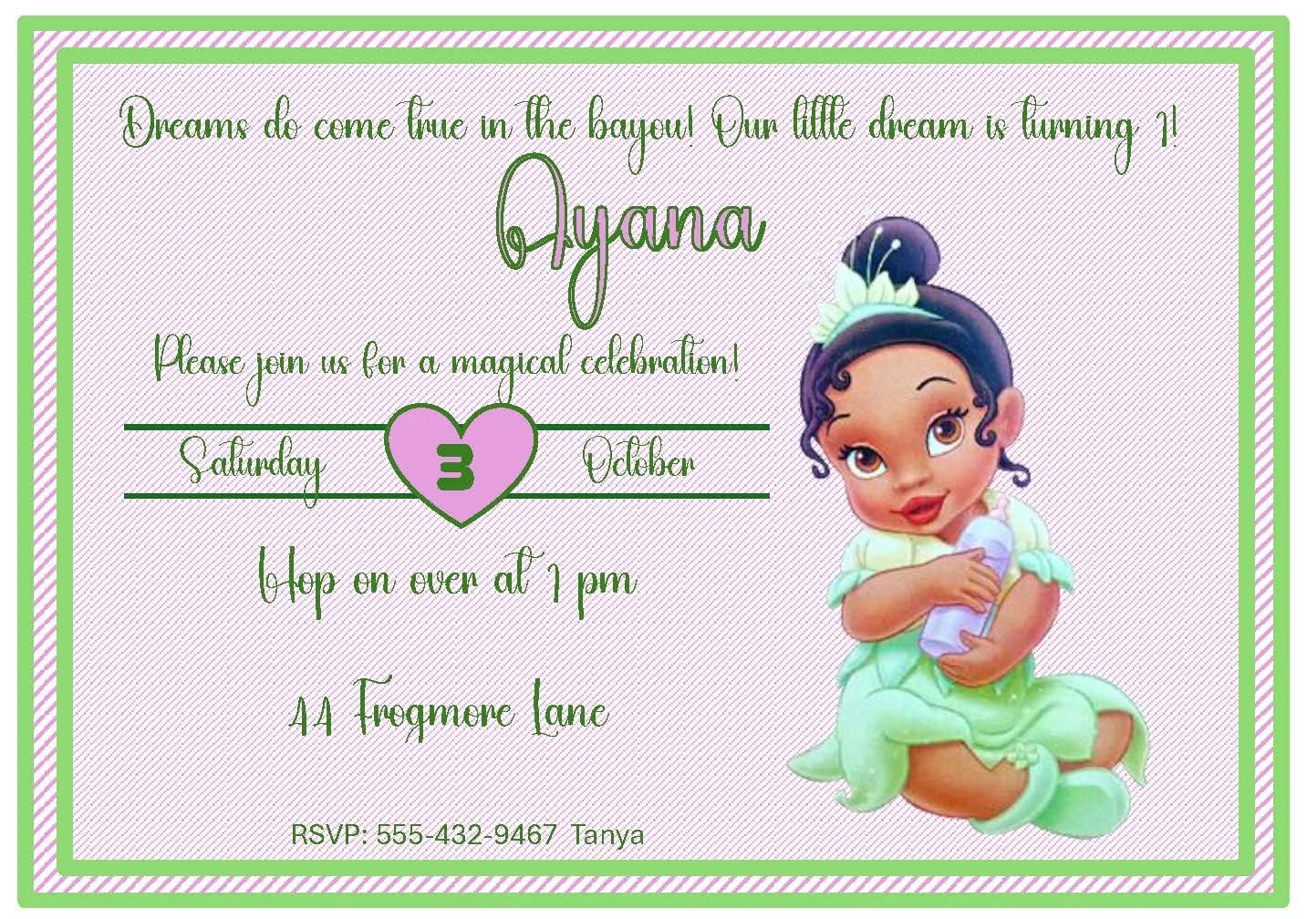 Baby Princess invitations are absolutely adorable and loved by guests of all ages! Tiana’s design features sweet lavender and green—a playful nod to the frog she’ll become—perfect for a storybook-themed baby shower or birthday. Prefer something else? No problem! We offer a wide variety of baby princess invitations in different colors and styles to match any party vision. Charming, whimsical, and ready to send smiles—these invitations set the perfect tone for your royal celebration.
