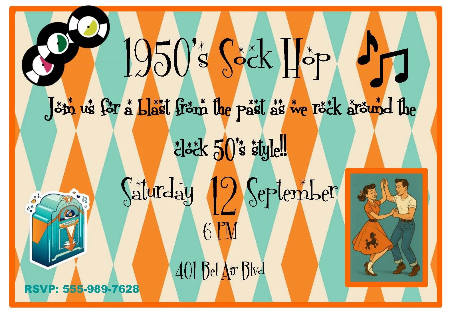 Rock around the clock with our cool 1950s party invitation, part of the "Decades" collection! Perfect for sock hops, diner-themed celebrations, or retro birthday bashes, this invite captures that iconic mid-century vibe with bold colors, classic fonts, and playful 50s flair. Pair it with our custom activity placemats to keep guests entertained—available for the 1920s, 1950s, 1980s, or 1990s—so every detail of your themed party feels authentic and fun. Handmade with love, ready to set the mood and make your event unforgettable.