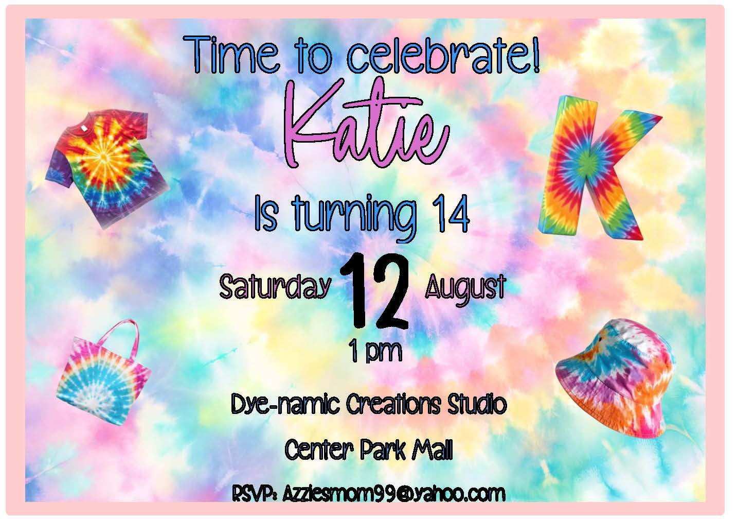 This Tie Dye invitation pops with vibrant pink and blue swirls—bold, playful, and sure to grab attention. Perfect for a Tie Dye party, birthday bash, or a colorful camping weekend, it sets a fun, carefree tone and invites guests to join in the creative celebration. Handmade charm meets eye-catching style—just add friends, music, and snacks!