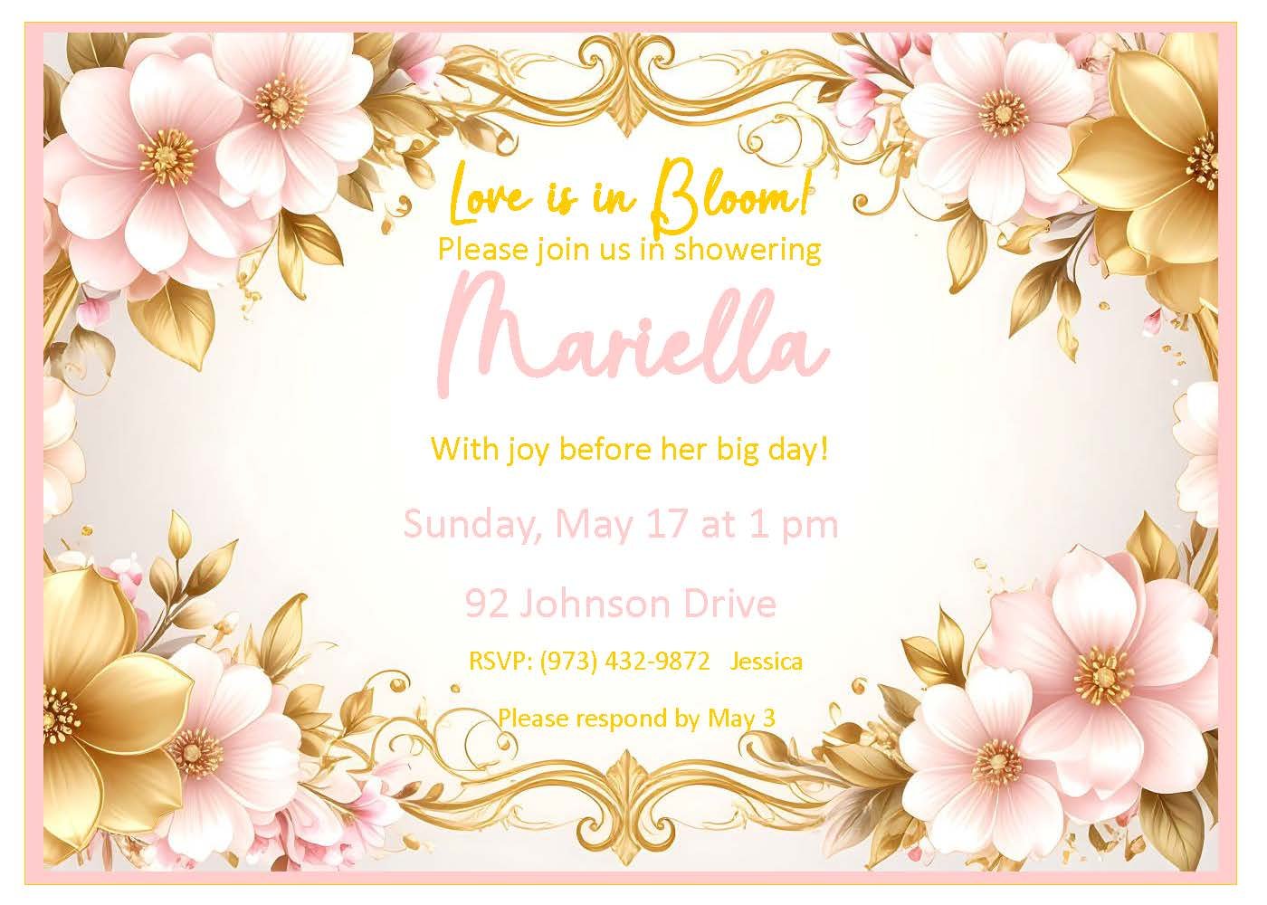Celebrate love with this stunning and elegant bridal shower invitation featuring soft pink and shimmering gold roses for a romantic, timeless vibe. Perfect for brides who adore feminine details and graceful flair, this design pairs beautifully with a variety of décor styles. Our bridal shower collection offers invitations in every color and style—something for everyone—so you can find the perfect match for your celebration and make the day truly unforgettable.