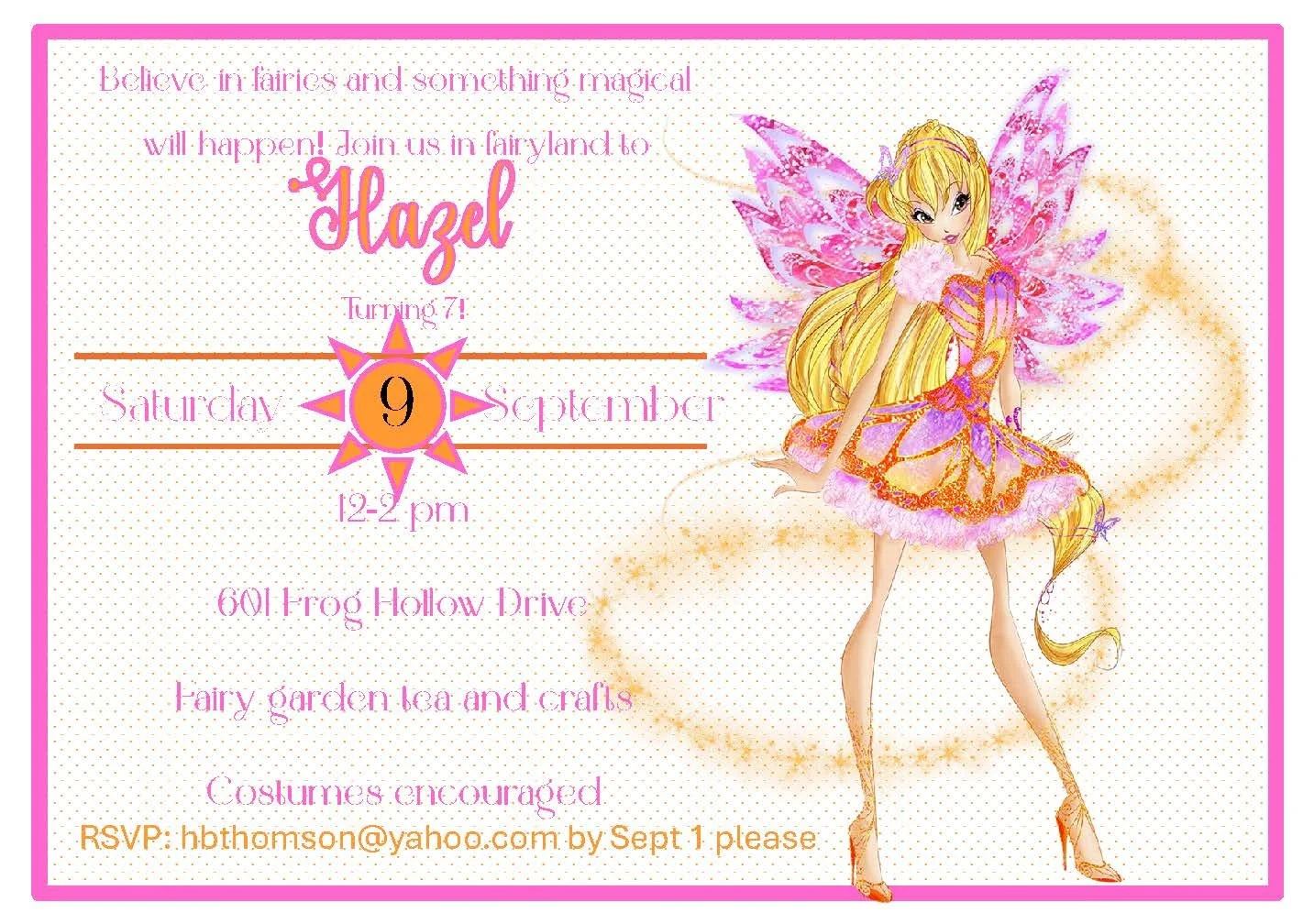 This pretty pink invitation features Rosetta, the garden fairy—delicate wings, floral crown, and a sprinkle of fairy dust to set a magical tone. Part of our whimsical fairy collection, this design pairs beautifully with other characters, colors, and styles for a fully coordinated celebration. Perfect for garden parties, birthday teas, or any fairy-themed event, Rosetta brings charm and sweetness that delight kids and grown-ups alike. Customize wording, add matching decor pieces, and create an enchanting invitation suite that makes your party feel truly special.