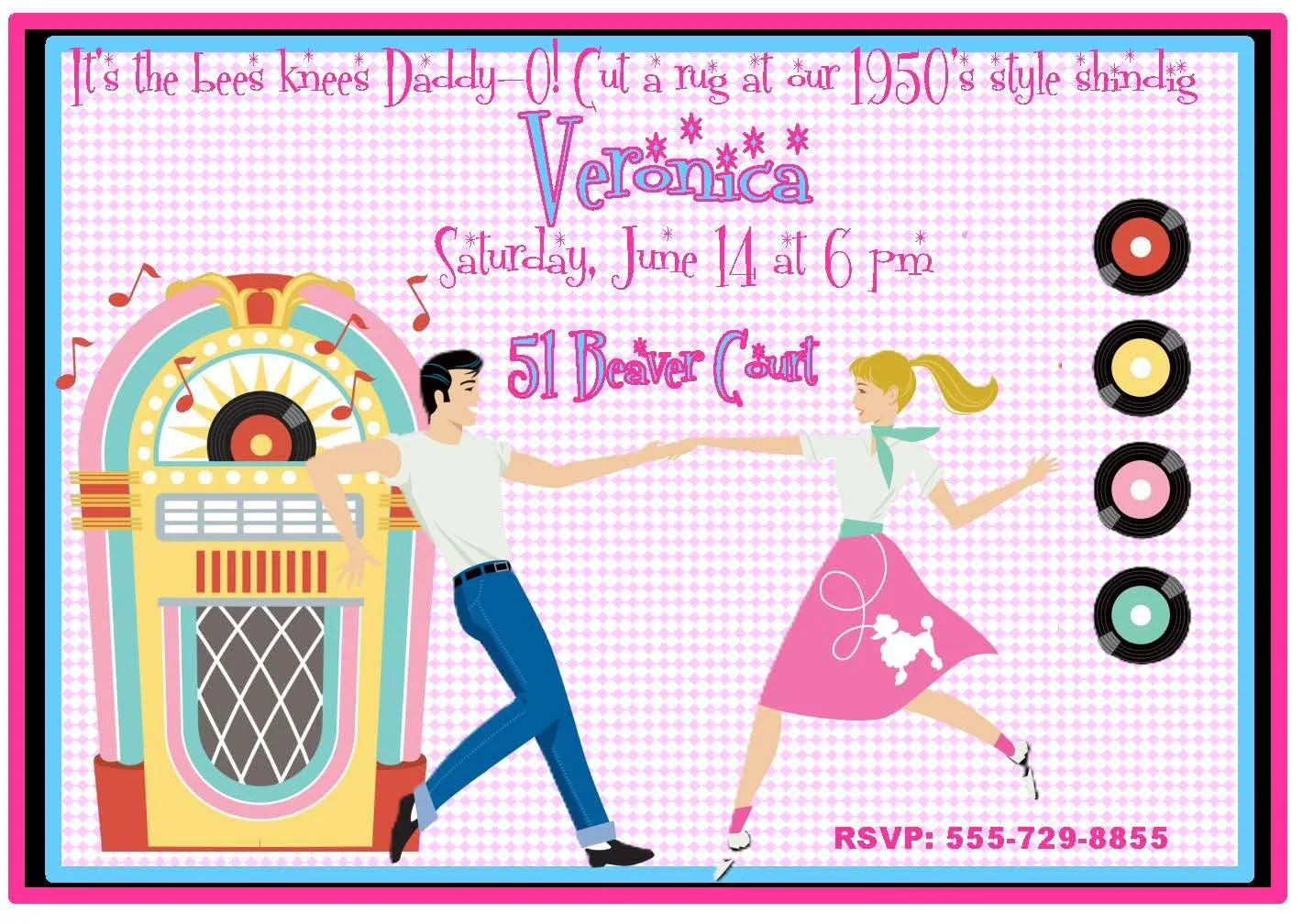 Get ready to twist and shout—this 50's Sock Hop invitation sets the scene for a dance party like no other! Bright retro colors and vintage-inspired fonts capture the charm of malt shops, jukeboxes, and drive‑in nights, transporting your guests straight back to the golden age of rock ’n’ roll. Perfect for birthday sock hops, anniversary dances, or nostalgic get‑togethers, this invite promises a fun, upbeat vibe and gets everyone in the mood to put on their poodle skirts and saddle shoes.