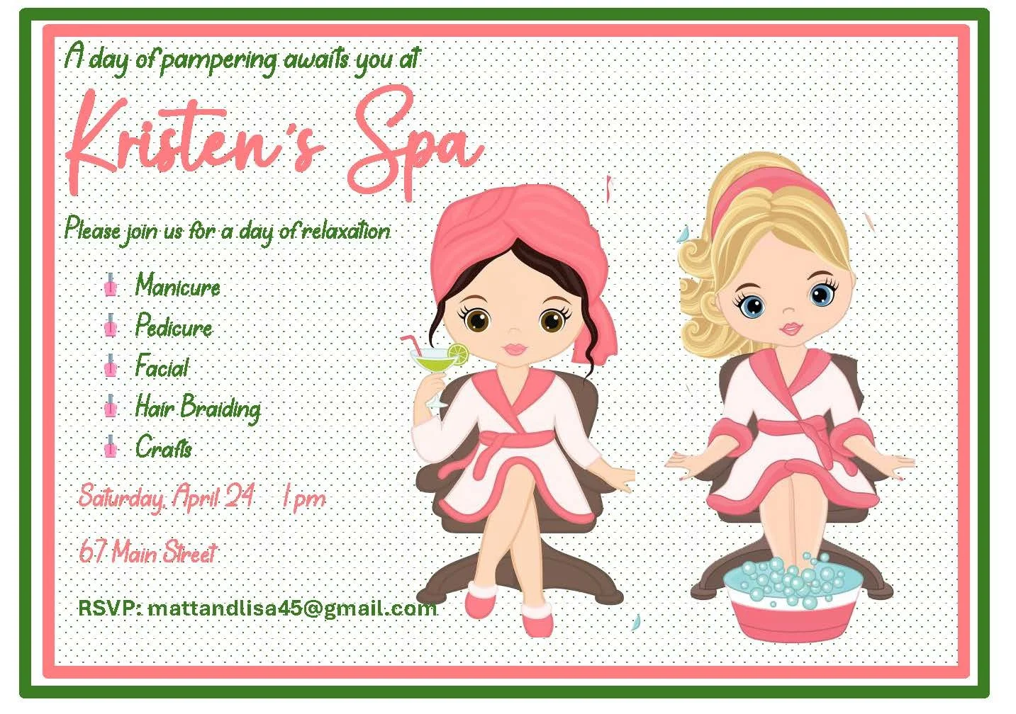 This spa party invitation is just the beginning! Our spa collection offers several adorable invitation styles to match any vibe, a full party plan with timeline and activity ideas, coordinated goodie bags, and a convenient party-in-a-box option that makes hosting effortless. Whether you’re planning a cozy at-home pamper day or a glam mini-spa for friends, we’ve got everything you need to create a relaxing, memorable celebration—handmade touches included.