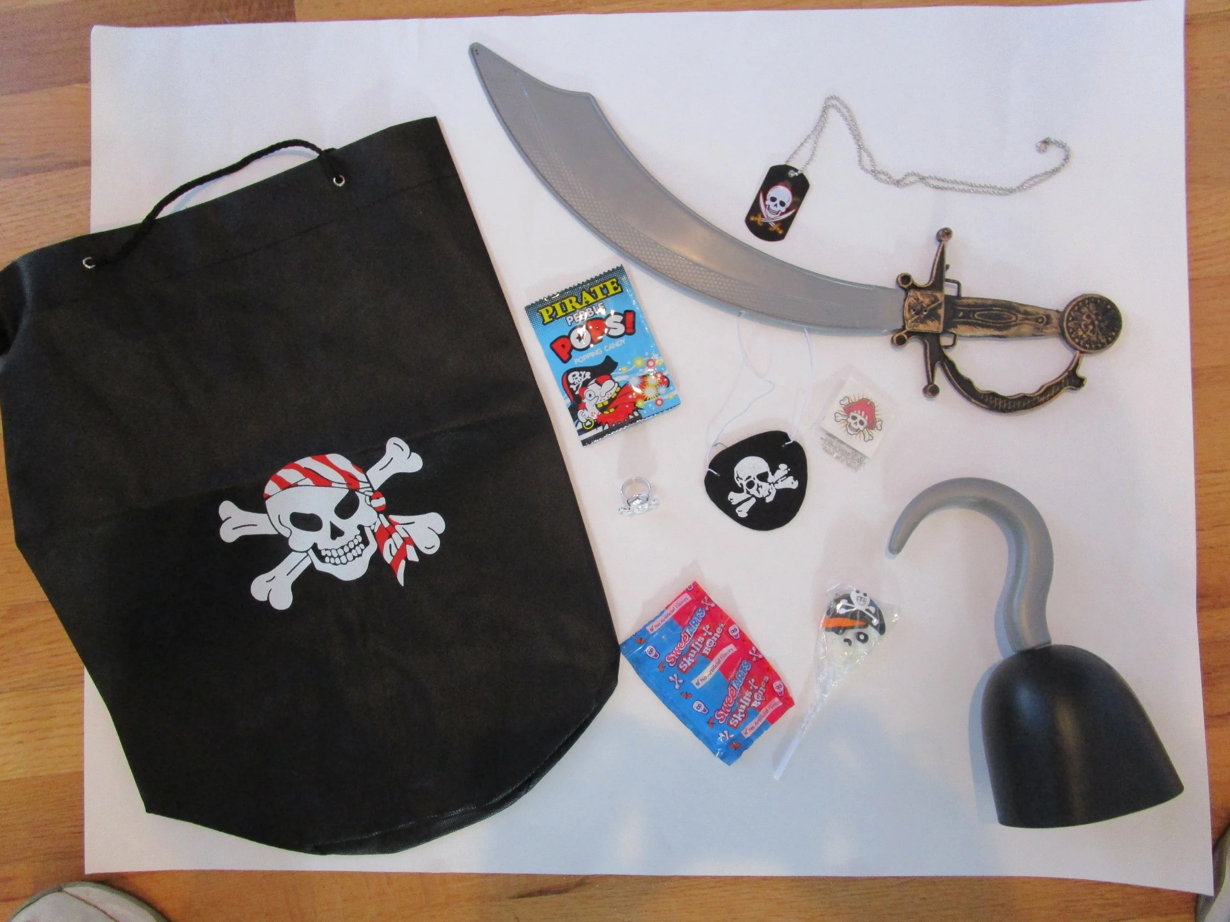 Set sail for adventure with our Pirate Goodie Bag! This fun drawstring bag is packed with everything a little buccaneer needs: a mighty cutlass, a trusty hand hook, a classic eye patch, a treasure-worthy necklace, a spooky skull ring, and delicious candy. Perfect for pirate-themed parties, treasure hunts, or any swashbuckling celebration!
