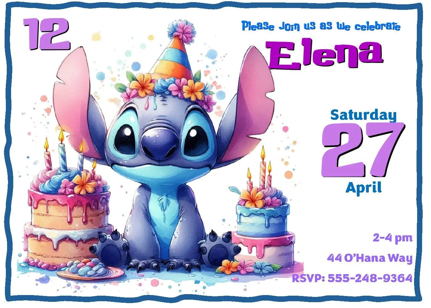This mischievous invitation features the loveable (but naughty) Stitch surrounded by birthday cakes—perfect for a playful, island-inspired celebration. Part of our Lilo & Stitch collection, this design comes in several invitation styles and colorways to match your party vibe, plus an optional custom activity placemat to keep little guests entertained. Handmade with care and full of character, these invites set the tone for a fun, unforgettable birthday.
