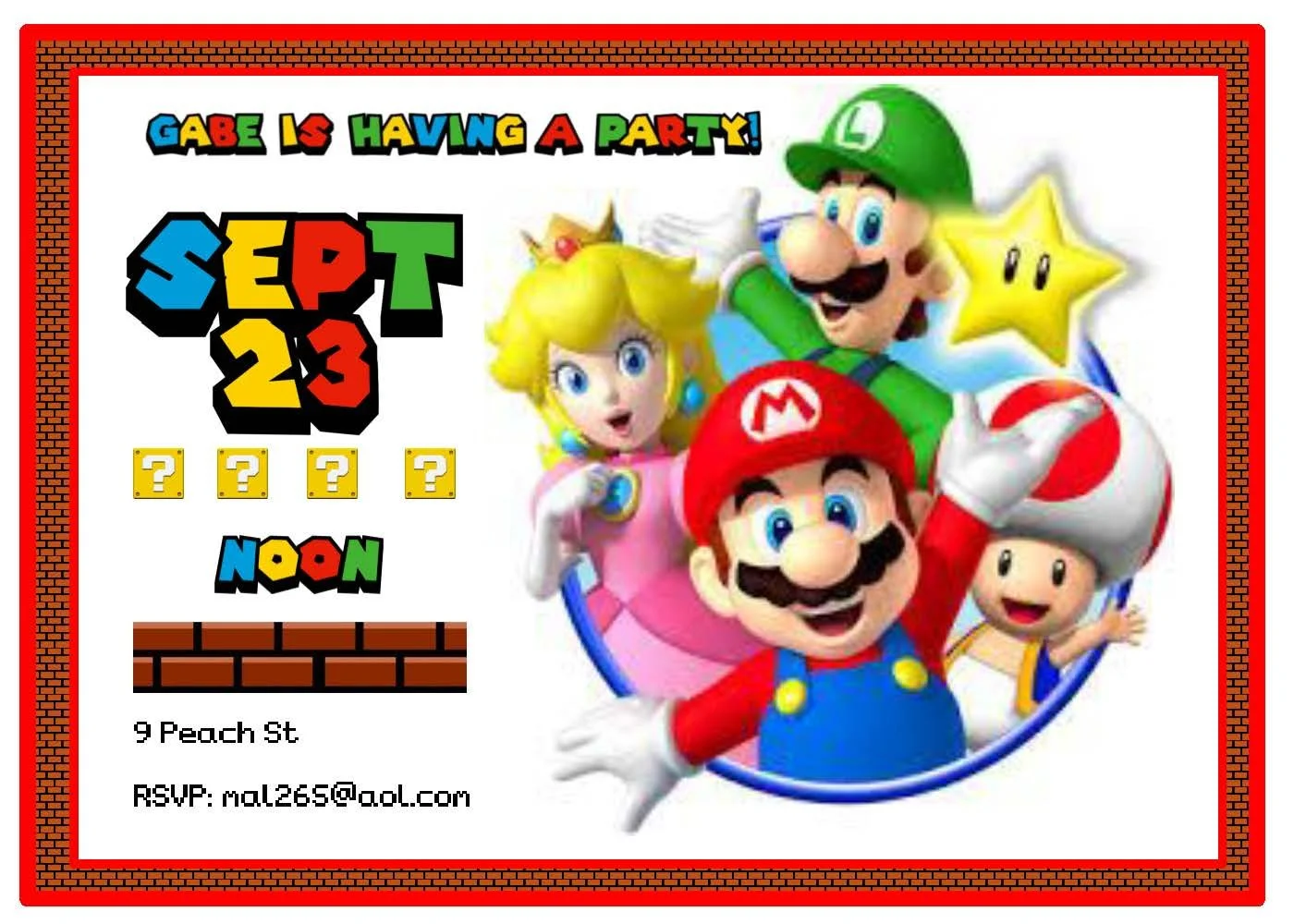 Get ready to jump into fun with our Mario Bros invitation in bold red! Perfect for birthday power-ups and themed game parties, this vibrant invite features iconic motifs, playful fonts, and space for all the party details. Pair it with a custom activity placemat from our collection—coloring sections and, game prompts to keep little players entertained. Browse our full selection of invitations and customizable placemats to create a celebration that's supercharged with nostalgia and fun.