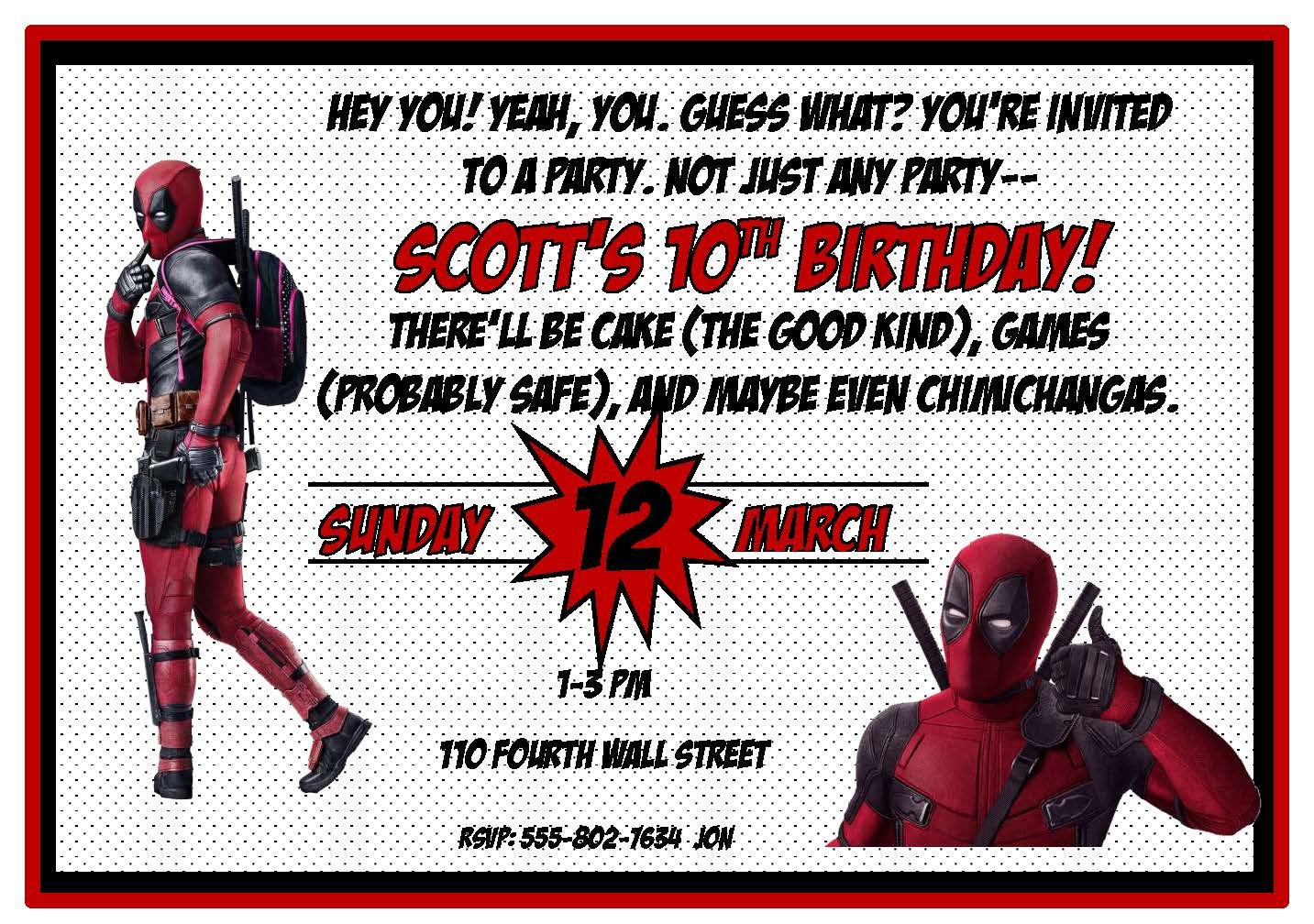 Meet the party MVP: our Deadpool-themed invitations and custom placemats. Bursting with fifth-wall-breaking quips and sarcastic charm, each design captures that perfect blend of chaotic fun and cheeky wit. Choose from several styles, each customizable with your event details and playful one-liners. Ideal for fans who want a party that’s loud, irreverent, and unforgettable. Warning: may cause uncontrollable laughter and mild moral ambiguity.