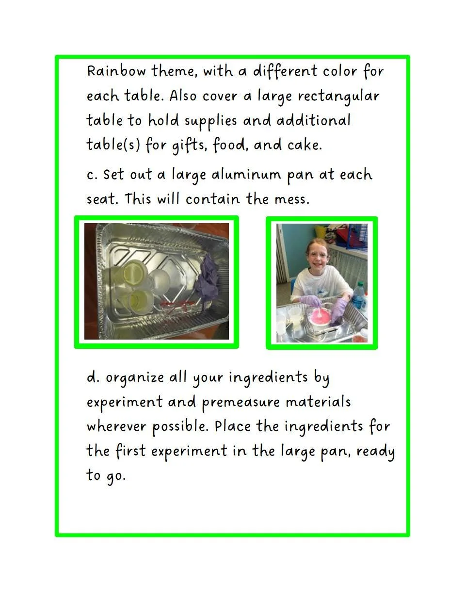 Science Party Plan is your ultimate guide to hosting an unforgettable educational celebration. Packed with vibrant color photos, detailed shopping lists, and easy-to-follow step-by-step setup instructions, it takes the stress out of party planning. Excite young minds with hands-on experiments, fully explained for safe and fun participation. Plus, each guest will take home a mini experiment book as a memorable favor, making this science party not just fun — but truly epic!